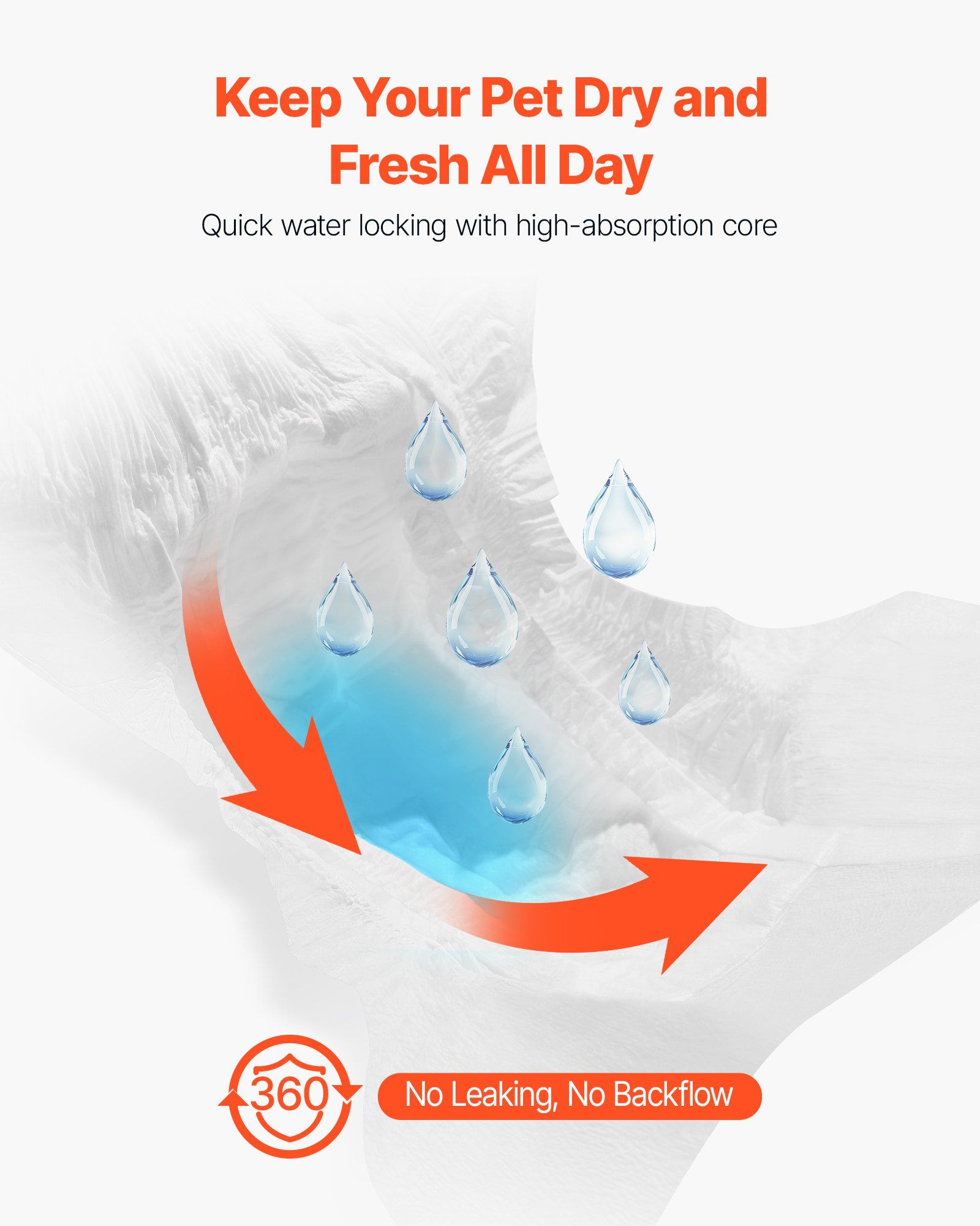 1.Super Absorbent: VEVOR XS-sized disposable female dog diapers feature a super absorbent core that quickly locks in liquid, offering 360° leak-proof protection with no backflow. Perfect for dogs in heat cycles, pet training, incontinence, post-surgery recovery, and travel. Suitable Waist Size: 9-16 inches / 22.86 - 40.64 cm